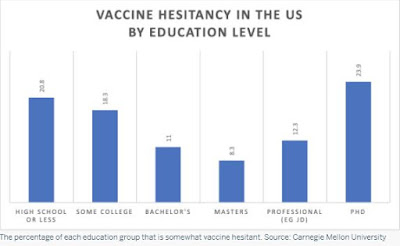 As a side note, but very noteworthy, while the media is busy trying shame the “uneducated,” Republican voters for not being vaccinated, it is “the most educated” that “are the least likely to get jabbed.”